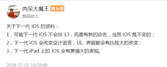 这里边最重要的信息内容是,下一代iOS会更改设计语言,现阶段的iOS 12是美国苹果公司开发设计的iOS的第12个版本号,于20186月4日举办的WWDC 2018当日发布,是iOS 11的后续版本号,对比 iOS 11,iOS 12 应用程序开启的速率提高了40%,键盘显示的速率提高了50%,狂扫打开相机的速率提高了70%。